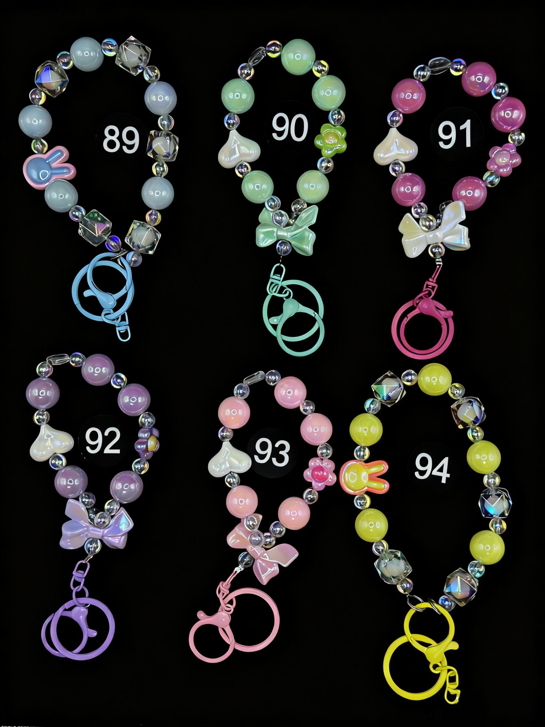 Wholesale Creative Cute Soft Resin Key Chains Bag Charms Car Keyring Beads Kawaii Cartoon Bow Beaded Bracelet Keychains